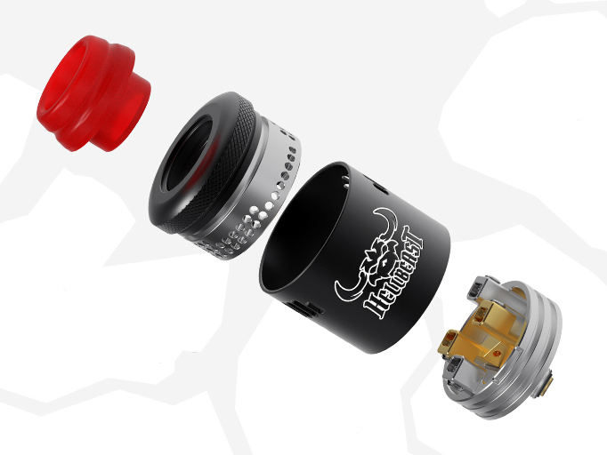 30 ноября компания Hellvape анонсировала в инстаграме нетривиальную дрипку — Hellbeast RDA. Устройство выполнили из нержавеющей стали в семи разнообразных цветовых комбинациях. Строгую цилиндрическую юбку увенчали «парящей» крышкой с мелкой накаткой. По высоким внутренним стенкам топкепа распределили семьдесят две маленькие перфорации диаметром по 1,2 мм. Контрастный дриптип наделили оригинальной сужающейся формой и 810-й посадкой. Купол перфорировали парой воздухозаборных решеток и украсили оригинальной рельефной гравировкой.
