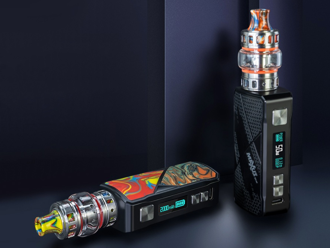 3 декабря компания Freemax представила на странице в фейсбуке набор для новичков — Maxus 50W Kit. Устройство облачили в лёгкий корпус с подточенным прямоугольным силуэтом и весьма миниатюрными габаритами, не превышающими в высоту 75 мм. Чёрный каркас изготовили из цинкового сплава и украсили яркими панелями из разноцветной эпоксидной смолы. На выбор предложили шесть вариантов окраса. На узкой стороне обосновалась привычная панель управления, включающая три клавиши, дисплей и USB-порт. Посадочную площадку разместили в центре и ограничили шириной стенок мода в 22 мм.