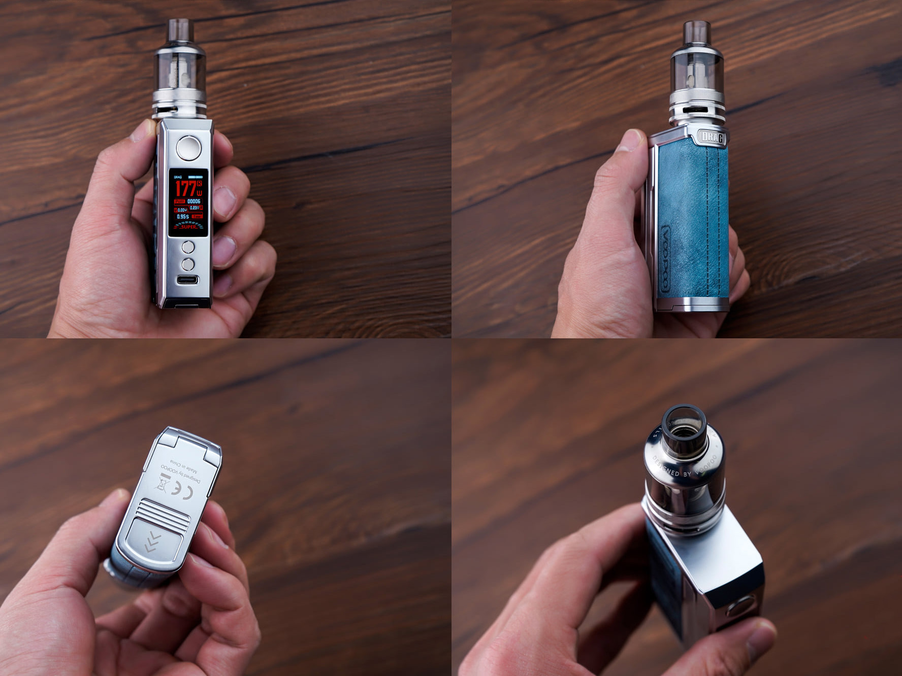 4 января компания Voopoo анонсировала в инстаграме стартовый набор — Drag 3 Kit. Обновлённый боксмод упаковали в прямоугольный цинковый корпус, оформленный в знакомом стиле. Широкие торцы и скругленную тыльную сторону покрыли экокожей с крупным тиснением. На выбор предложили пять расцветок, отличающихся не только цветами декоративной вставки, но и оттенками металлического каркаса. Стальную посадочную площадку ограничили шириной корпуса в 25 мм и дополнили протоками, защищающими от прикипания. На узкой лицевой стороне установили круглую кнопку зажигания, дисплей, пару клавиш регулировки и USB-порт. Ко дну пристроили откидную крышку, отвечающую за доступ к батарейному отсеку.