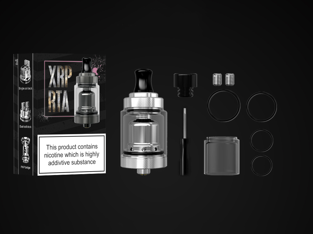 6 января компания Mechlyfe представила на своём сайте оригинальный бак — XRP RTA MTL, разработанный совместно с Fallout Vape. Устройству дали лаконичный стальной корпус с минимумом декора и диаметром в 24 мм. Дриптип реализовали сразу в двух дельриновых версиях — широкой для классического обдува и приталенной для сигаретной тяги. Оба экземпляра получили 510-ю посадку. Заправочное отверстие разместили под съёмной крышкой. Основание не стали обременять вращающимся воздушным кольцом, ограничившись лишь накаткой.