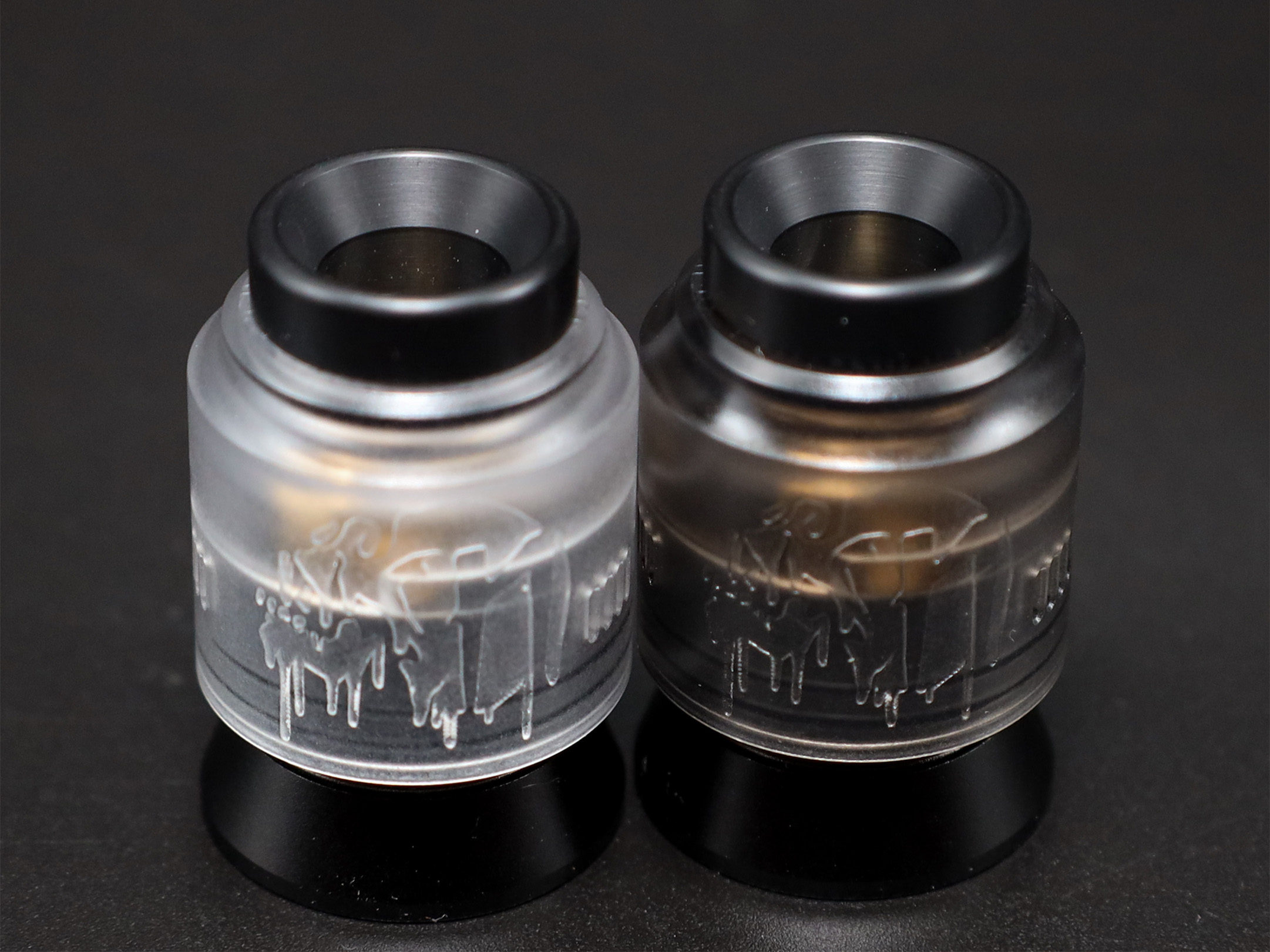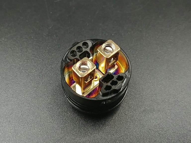 В центре знакомой базы находятся две высокие позолоченные стойки с широкими слотами, отвечающие за установку пары спиралей. Ножки намотки необходимо разместить в горизонтальной плоскости и зафиксировать при помощи расположенных сверху винтов со шлицами под прямую отвёртку. Подача обдува осуществляется снизу, через шесть маленьких и пару больших отверстий, распределённых по расширениям в бортах базы. Для настройки затяжки следует вращать купол относительно деки. Высокие стенки вкупе с просторной базой образуют глубокий вместительный резервуар. Кроме того, предусматривается BF-пин для работы со сквонкерами.
