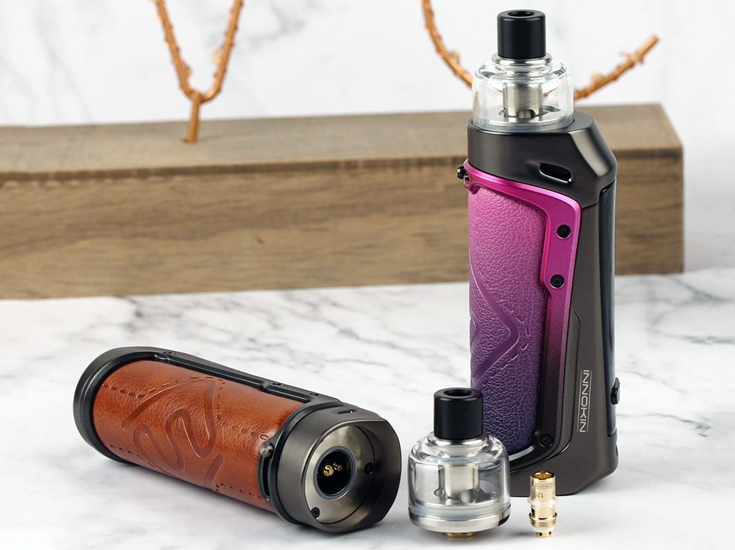 5 февраля компания Innokin анонсировала в инстаграме новый эргономичный девайс — Sensis Pod Kit. Под-мод облачили в портативный округлый корпус с удобной тыльной панелью, изготовленной из углепластика либо экокожи. Вдоль вступающего угловатого фасада растянули глянцевую панель управления с интегрированной кнопкой зажигания, дисплеем и двумя клавишами регулировки. Снизу разместили USB-порт. Стеклянный картридж укомплектовали двумя дриптипами под разные стили обдува. Кроме того, предусмотрели съёмный 510-коннектор для работы с обычными баками и дрипками.