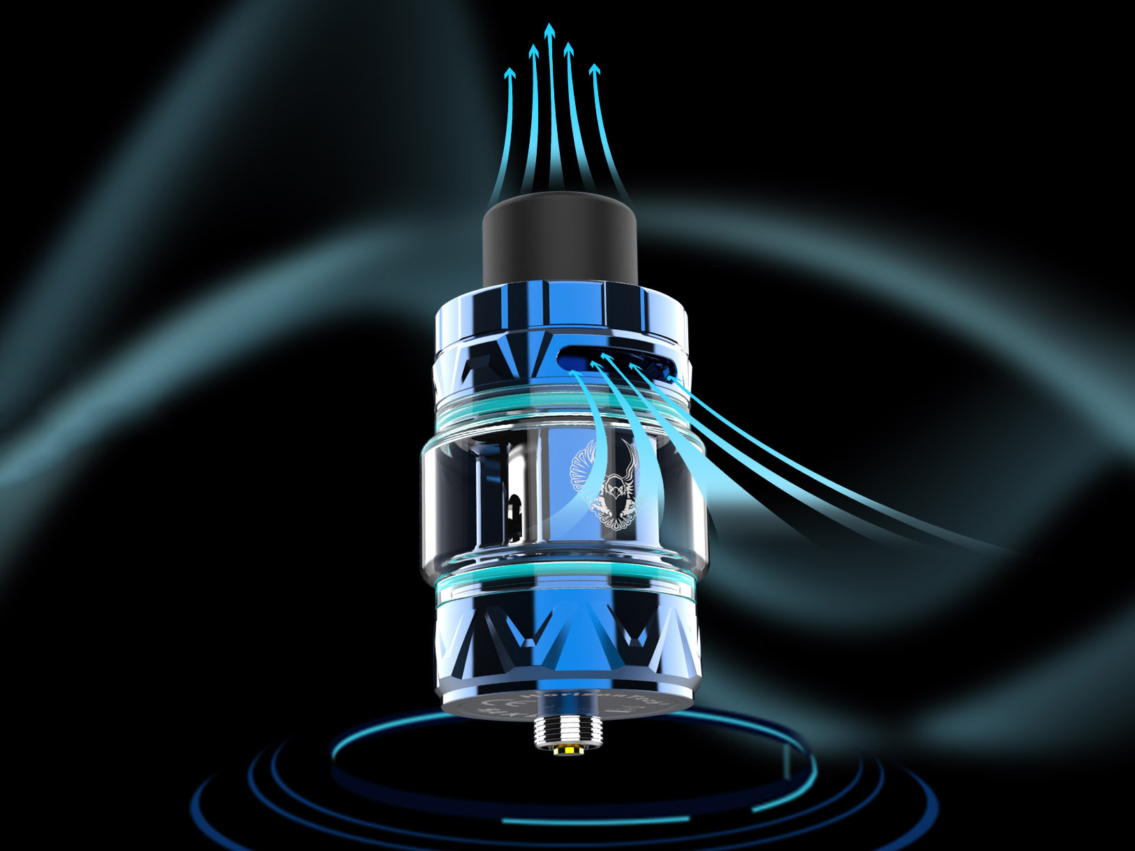 На необслуживаемой базе возвышается новый сеточный испаритель с парной намоткой на 0,17 Ом. Кроме того, в резерве имеется альтернативный экземпляр с одиночной сеткой, мелким плетением и сопротивлением в 0,16 Ом. Обычную цилиндрическую колбу на 3,5 мл можно заменить увеличенной широкой вариацией с ёмкостью в 5 мл. Заправку надлежит производить через отверстие с силиконовой вставкой, под скручивающимся топкепом. Затяжка регулируется поворотом кольца.