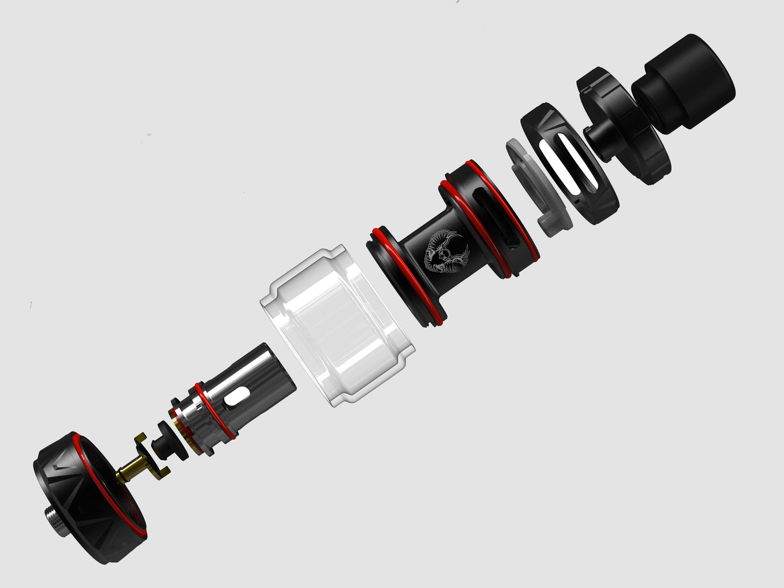 30 марта китайская компания Horizon представила на странице в фейсбуке необслуживаемый бак — Sakerz Sub Ohm Tank. Устройству дали высокий стальной корпус с гранёным цилиндрическим силуэтом и посадочным диаметром в 25 мм. Сверху разместили скручивающуюся крышку с широкими насечками и минималистичным 810-м дриптипом из дельрина. Воздушное кольцо разместили непосредственно над резервуаром, обеспечив надёжную защиту от протечек. Крупное основание украсили рельефным орнаментом.