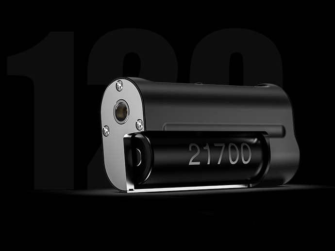 За тонкими алюминиевыми стенками скрывается фирменная регулируемая плата Hellchip, располагающая максимальной мощность в 120 ватт. Диапазон доступного сопротивления составляет от 0,1 до 2,0 Ом. Для питания можно использовать три формата аккумуляторов — 21700, 20700 и 18650, для работы с последним экземпляром предусматривается пластиковый адаптер. USB Type-C позволяет осуществлять быструю зарядку током в 2А.