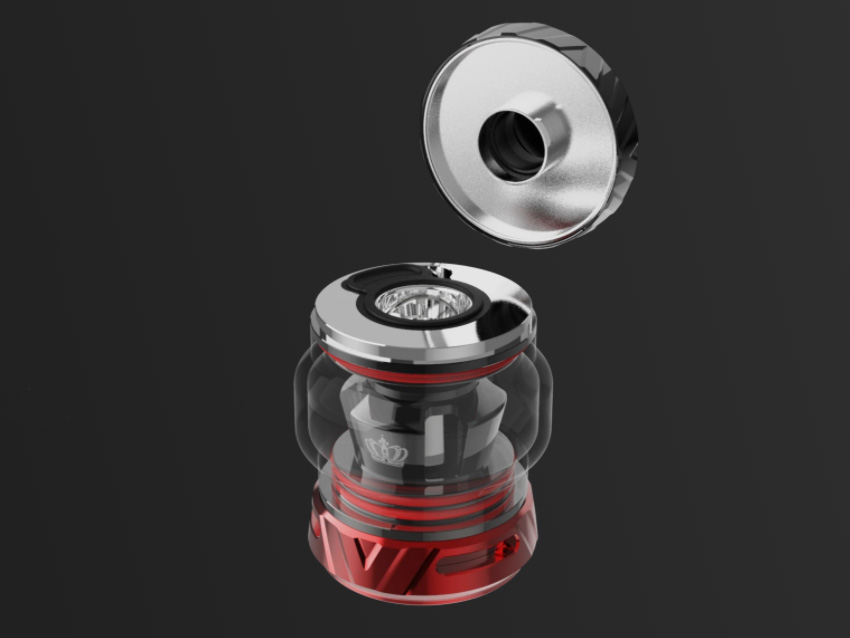 Комплектный бак отличается нетривиальной шахтой с запатентованной системой самостоятельной очистки и сборки конденсата. Под куполом располагает предустановленный сеточный испаритель из серии UN2 с сопротивлением в 0,23 Ом. Помимо того, предусматривается альтернативный вариант на 0,3 Ом. Заправочные отверстия скрываются сверху, под скручивающейся крышкой. Резервуар с расширенной колбой вмещает 5 мл. Обдув регулируется нижним кольцом.