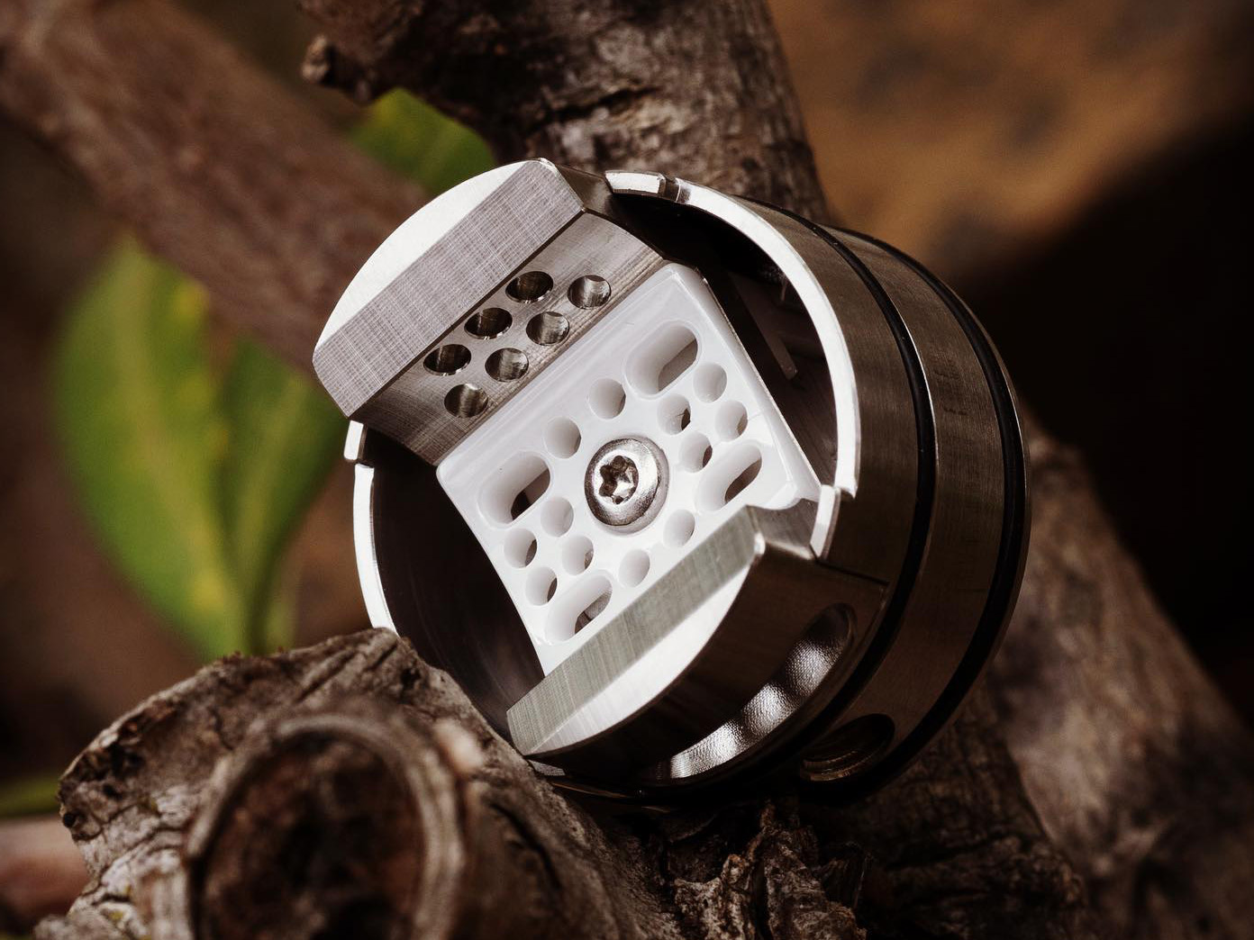 Базу представляет просторная площадка без стоек, но со съёмной керамической решёткой обдува и четырьмя слотами под пару спиралей. Ножки вертикально размещаются в овальных отверстиях, после чего фиксируются при помощи подпружиненных боковых пластин и позолоченных винтов под шестигранный ключ. Воздушный поток поступает на намотку через 26 маленьких отверстий, как снизу, так и под углом, через широкие перфорированные стенки. Затяжку можно регулировать вращая купол относительно базы. Объём резервуара составляет 2 мл. Стандартный пин можно заменить на вариант для сквонка.