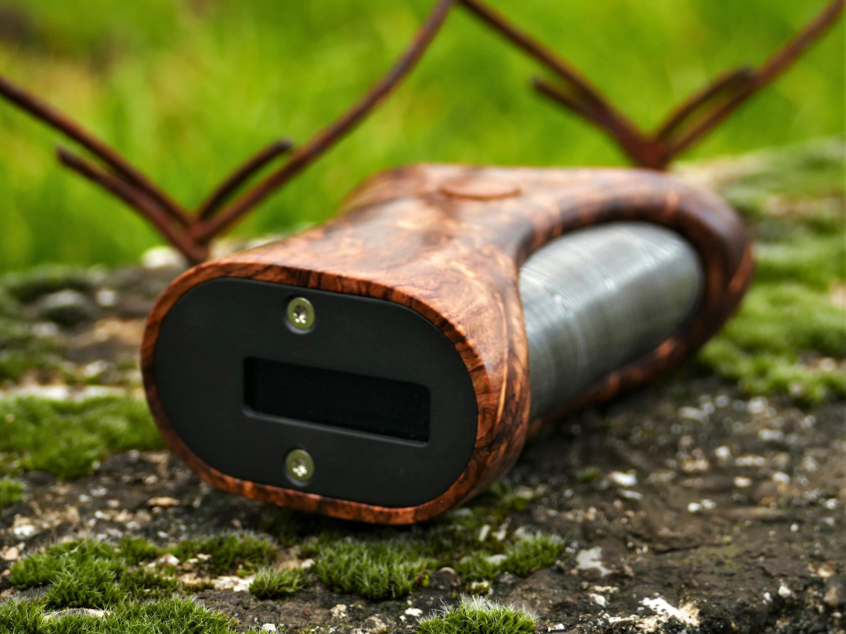 21 февраля хорватская компания Visionary Mods представила на странице в фейсбуке нетривиальный девайс — Nymfa Box Mod. Мод упаковали в яркий корпус из стабилизированной древесины с эргономичной изогнутой формой. Сбоку разместили круглую кнопку активации. Основание фасада дополнили регулировочной клавишей «+/-». На противоположной стороне сделали крупный вырез, обнажающий оригинальный аккумуляторный тубус исполненный из дамасской стали. Сверху прикрутили перфорированную съёмную крышку. Посадочную площадку наделили диаметром в 24 мм. Дисплей отправили на дно.