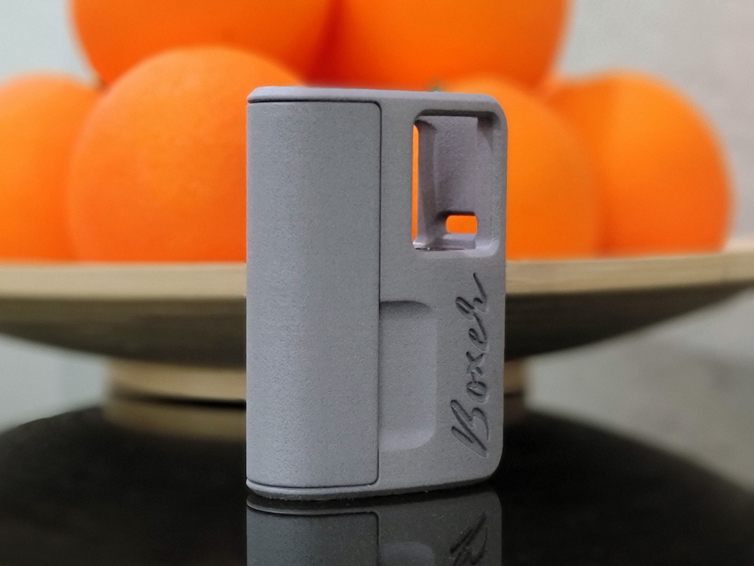 7 апреля компания Boxer Mod представила в инстаграме новый девайс — Boxer Classic DNA60 SbS Mod. Оригинальный мод облачили в прочный нейлоновый корпус с компактными габаритами, легким весом и защитой от выцветания. На узкой стороне разместили горизонтально вытянутую кнопку fire и пару регулировочных клавиш. Дисплей занял один из торцов. Стальную посадочную площадку наделили диаметром в 25,5 мм и дополнили просторным каркасом. Доступ к аккумуляторному ложу ограничили массивной съемной панелью, зафиксированной на тыльной стороне устройства.
