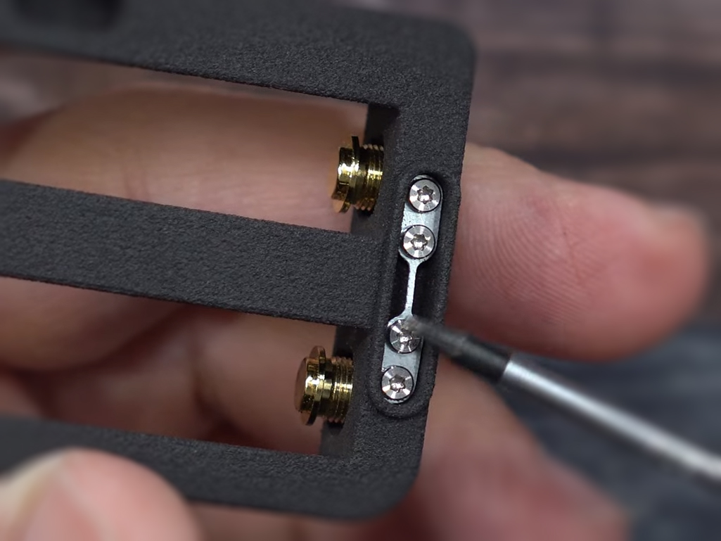 За широкими боковыми стенками скрывается латунная контактная группа с посеребрением и ложе под два внешних аккумулятора формата 18650. Для подстройки стального коннектора под высоту батарей необходимо подкрутить контакты на дне корпуса. На одной из боковин каркаса имеется круглый блокиратор. Кроме того, предусматривается возможность установки сменных плавких предохранителей, рассчитанных на ток до 37А.