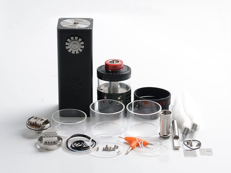 В начале 2021 года компания Steam Crave представила на своём сайте стартовый набор — Titan Advanced Combo Kit. Необычный боксмод выполнили из цинкового сплава в трёх сдержанных расцветках — чёрной, тёмно-серой и серебристой. Корпус наделили солидными габаритами, квадратным профилем и анатомическими вырезками на скругленных углах. Лицевую сторону украсили рельефным логотипом и снабдили оригинальной кнопкой активации, выполняющей также функцию регулятора. На торце предусмотрели небольшой монохромный дисплей. Просторную посадочную площадку обеспечили запасом в 41 мм и дополнили протоками, защищающими от прикипания. На дне разместили съемную крышку с защелкой.