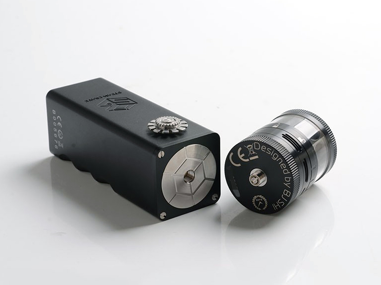 В паре с модом идет не менее экстравагантный обслуживаемый бак-трансформер. Объём резервуара можно увеличить с 20 до 32 мл посредством удлиненной колбы и дополнительной шахты. Помимо того, можно полностью исключить колбу, перестроив бак в коренастую дрипку ёмкостью 4 мл. Под куполом располагается угловатая платформа с шестью слотами для установки двух массивных спиралей. В дополнение ко всему, можно установить альтернативную деку для работы с сеткой.