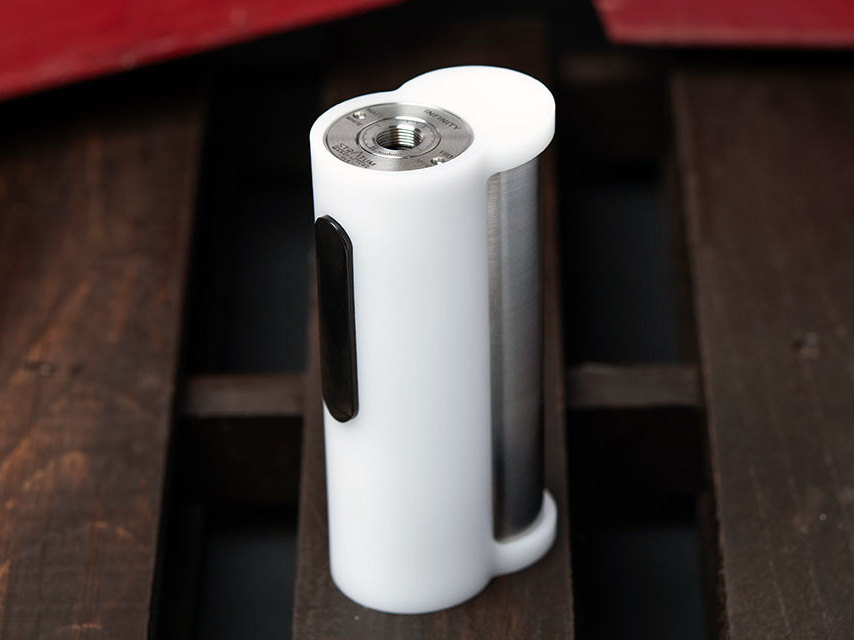 21 мая компания OLC представила в инстаграме оригинальный девайс — V8 Infinity Box Mod. Корпус боксмода реализовали в эргономичной округлой форме из прочного и легкого дельрина. Устройство выпустили ограниченной партией в двух расцветках — черной и белой. Фасад укомплектовали вытянутой кнопкой активации с интегрированным дисплеем. Тыльную сторону облагородили крупным вырезом, обнажающим стальной аккумуляторный цилиндр. На дне разместили пару клавиш регулировки и скручивающуюся крышку с ключом. Вращающуюся посадочную площадку украсили гравировкой и ограничили диаметром в 24 мм.