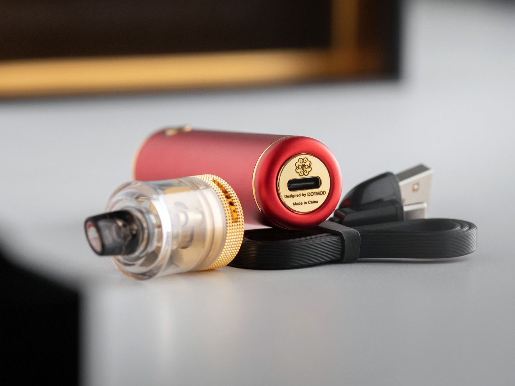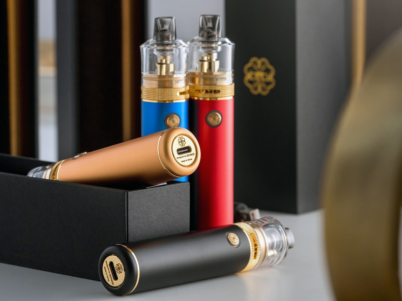 4 июня компания Dotmod представила на странице в фейсбуке компактный набор — DotStick 1650 mAh Kit. Девайс оформили в ярком фирменном стиле из легкого алюминиевого сплава. На выбор предложили четыре расцветки. Монотонный цилиндрический корпус обеспечили скромными габаритами, дополнили традиционными золотыми вкраплениями, а также защитили от воды и ударов по стандарту IPX7. Рельефную посадочную площадку ограничили диаметром в 22 мм. Верхушку лицевой стороны укомплектовали гравированной кнопкой с индикатором. USB-порт отправили на дно.