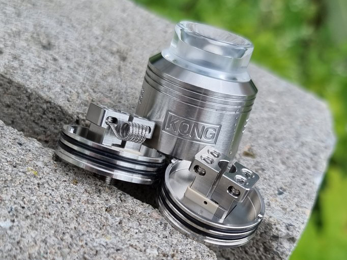 Компания QP Design выпустила Kong RDA Limited Edition. Оригинальная дрипка получила посадочный диаметр в 28 мм, массивную базу под две спирали и комплект из трех куполов.