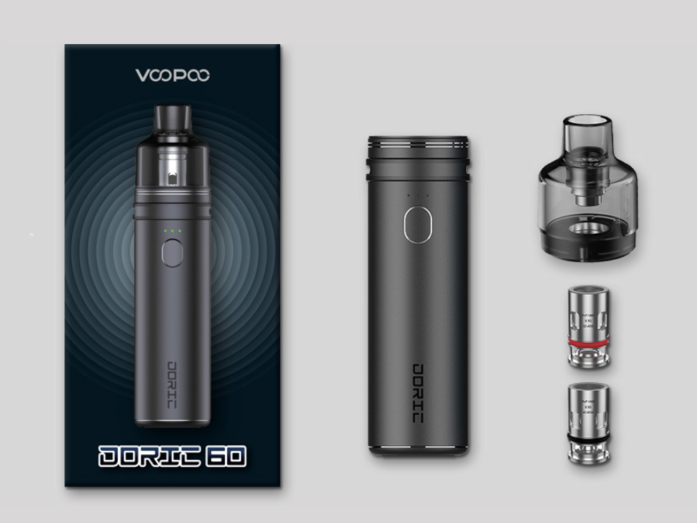 Компания Voopoo выпустила набор Doric 60 Kit. Он состоит из лаконичного под-мода с вместительной батареей на 2500 мАч и картриджа PnP на 4,5 мл с двумя различными испарителями.