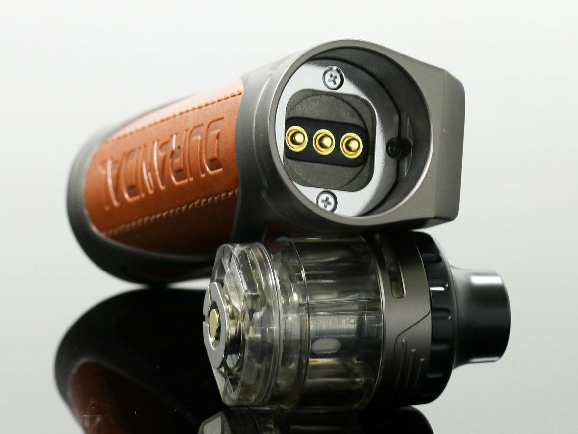 Съемный магнитный картридж обладает емким резервуаром на 4 мл и герметичным воздухозаборным кольцом, позволяющим регулировать интенсивность обдува. Заправочное отверстие находится сверху, под съемной крышкой. Сменные испарители реализуются в двух экземплярах с сопротивлением в 0,16 и 0,25 Ом.