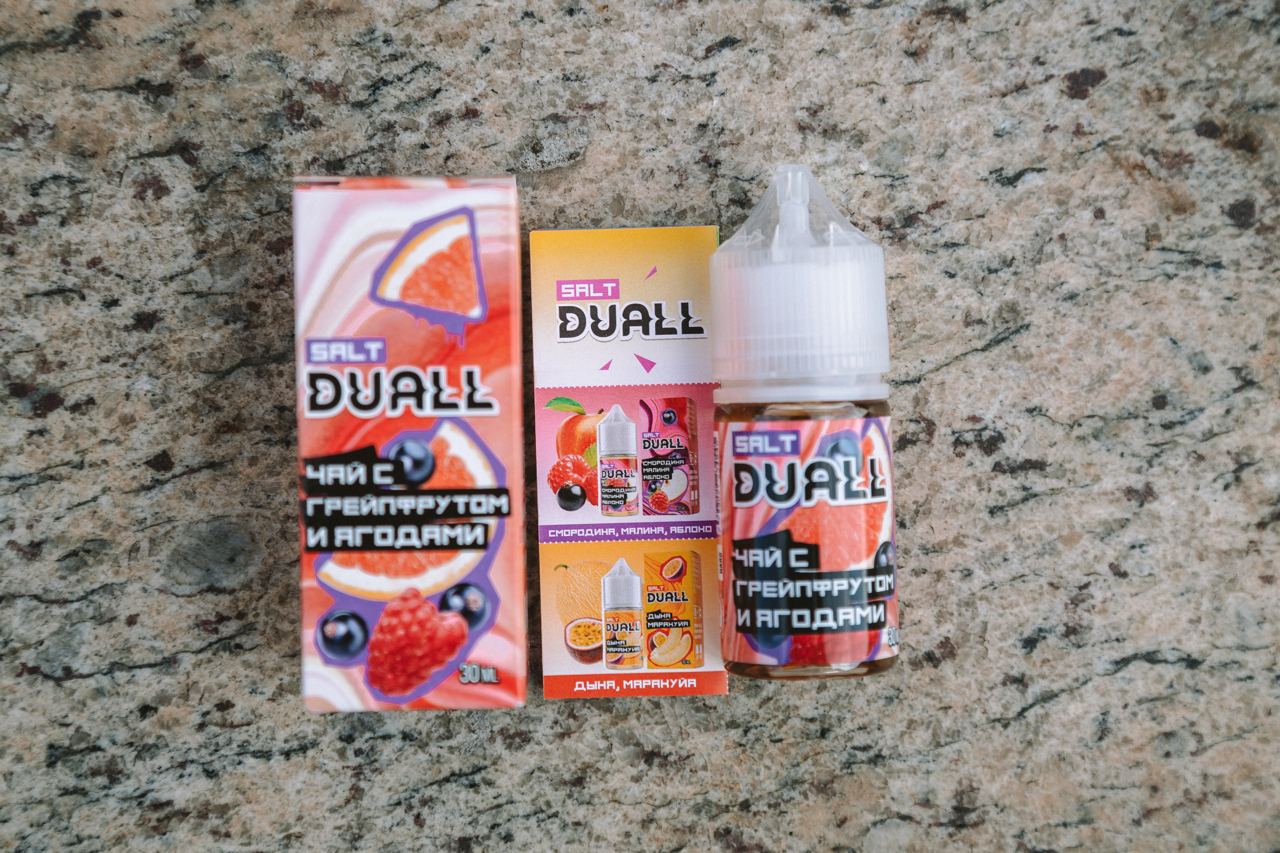 Жидкость DUALL SALT — хороший вариант для тех, кому мало одних лишь маракуй с манго. Это насыщенная и разнообразная линейка, которую можно уверенно советовать любителям свежих ягодно-фруктовых сочетаний. Хорошая серия, способная удивить не только этикеткой. РРЦ за 30 миллилитров — 350 рублей.