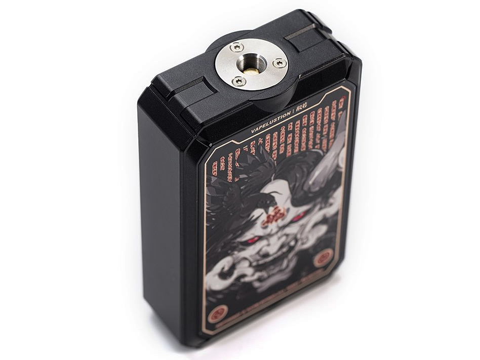 8 сентября компания Vapelustion представила в инстаграме регулируемый боксмод — Hannya 2 Box Mod. Девайс упаковали в прямоугольную форму с солидными габаритами и подточенными углами. Каркас изготовили из цинкового сплава и окрасили в двух расцветках — черной и белой. На широких торцах зафиксировали крупные декоративные вставки с оригинальными яркими изображениями, представленными в четырех разнообразных вариациях. Стальную посадочную площадку ограничили диаметром в 25 мм. Вдоль узкой стороны растянули привычную панель управления, состоящую из круглой кнопки активации, дисплея, двух регулировочных клавиш и USB-порта.