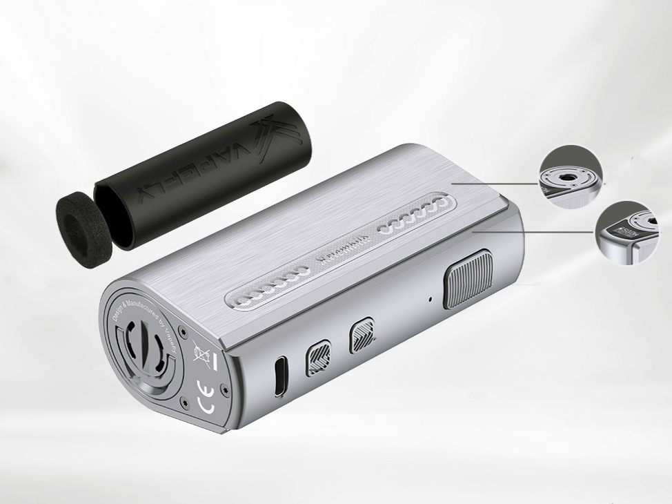 12 октября компания Vapefly представила в инстаграме дуэт боксмода и необслуживаемого бака — Kriemhild 80W Kit, названный в честь героев «Песни о Нибелунгах». Боксмод облачили в цельнометаллический корпус, оформленный в лаконичном, но достаточно оригинальном стиле. На выбор предоставили четыре расцветки. Стальную посадочную площадку обеспечили запасом в 30 мм и протоками, защищающими от прикипания. Рядом разместили небольшой монохромный дисплей. Вдоль узкого фасада расположили комплект из трёх эргономичных клавиш и USB-порт. Дно укомплектовали скручивающейся крышкой аккумуляторного отсека с удобным откидным ключом.