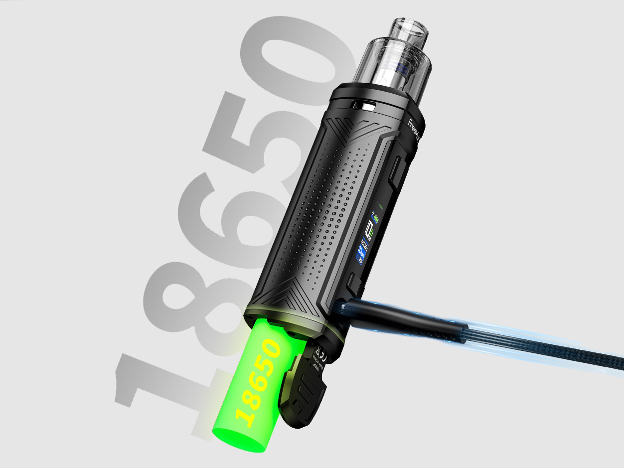 Девайс комплектуется функциональной платой с вариативным цветным интерфейсом, диапазоном мощности от 5 до 80 ватт, а также возможностью работы в режимах Smart и Bypass. В качестве основного элемента питания используется внешний аккумулятор формата 18650. Зарядку надлежит производить через USB Type-C током в 2А.
