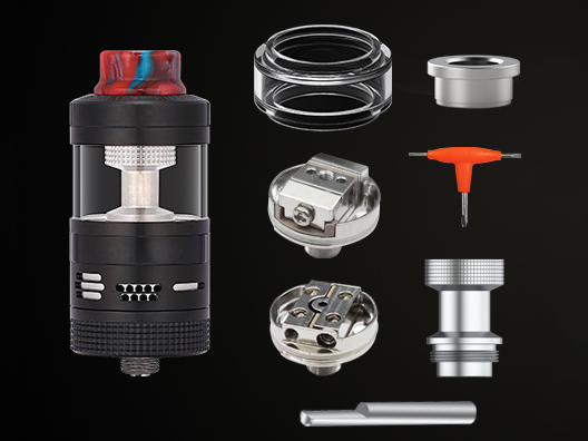 Компанию моду составляет универсальный бак, отличающийся наличием трех различных баз. По умолчанию внутри находится вариант с двумя прямоугольными стойками и изогнутой решётчатой рампой для объёмного обдува одной спирали. Кроме того, предусматривается вариант без стоек, а также альтернатива с парой массивных прижимных пластин для установки сетки. Основную колбу емкостью 5 мл можно заменить расширенной версией на 7 мл.