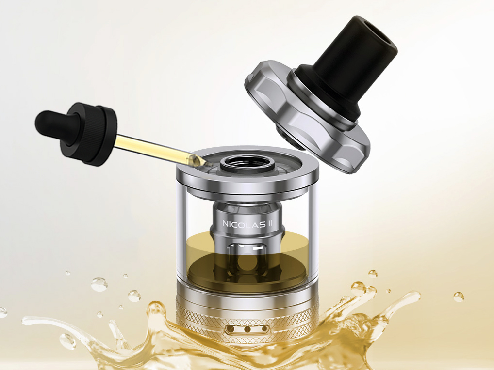 19 ноября компания Vapefly представила на странице в фейсбуке новый девайс — Nicolas 2 MTL Tank. Бак получил приземистый цилиндрический корпус, оформленный в лаконичном, но оригинальном стиле из нержавеющей стали. Выбор расцветок ограничили четырьмя сдержанными версиями. Закаленное стекло защитили дополнительным металлическим каркасом с крупными прорезями. Скручивающуюся граненую крышку снабдили стандартным 510-м дриптипом из дельрина. Помимо того, предусмотрели альтернативный приталенный вариант. Под топкепом спрятали углубленный желоб с заправочными отверстиями. Дно подпоясали вращающимся кольцом с накаткой.