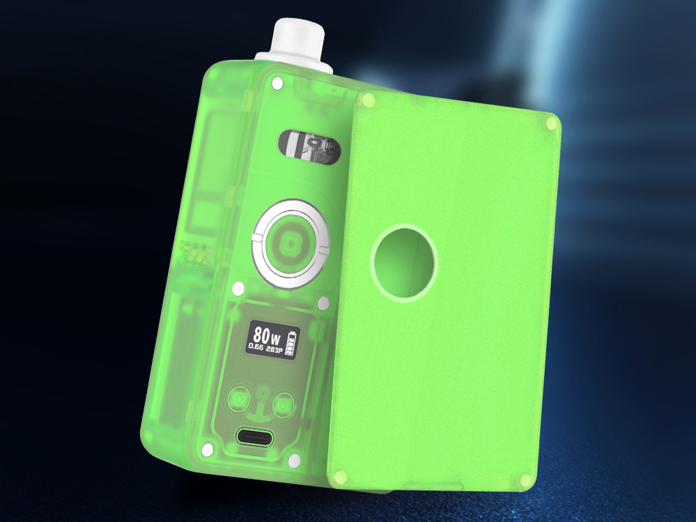 За полимерными стенками трудится фирменная плата с максимальной мощностью в 80 ватт, а также температурным контролем и Bypass. В качестве элемента питания можно использовать три вида внешний батарей — 21700, 20700 и 18650, для последнего предусматривается адаптер. Зарядку надлежит осуществлять через USB Type-C током в 1А. Сопротивление ограничивается диапазоном от 0,05 до 3,0 Ом. Картридж реализуется сразу в двух экземплярах — первый с обслуживаемой базой под одну спираль, второй для сменных испарителей серии VVC. Объем бака составит 3,7 либо 5 мл в зависимости от версии бака. Под резервуаром предусматривается удобное граненое кольцо для настройки обдува.