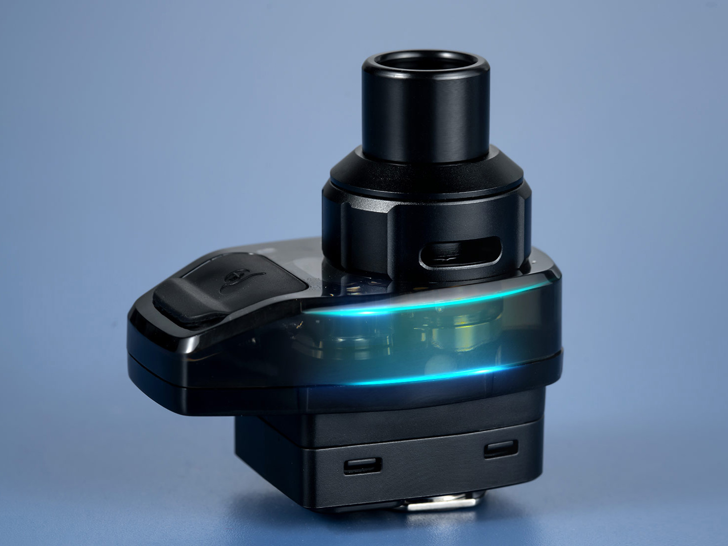 Девайс комплектуется лаконичной платой, предусматривающей цветной интерфейс, вариативную мощность в диапазоне от 5 до 45 ватт и возможность переключения на Bypass. Доступное сопротивление находится в пределах от 0,1 до 2,0 Ом. За питание отвечает интегрированная батарея на 1400 мАч. Для быстрой зарядки током в 2А предусматривается USB Type-C. Съемный картридж отличается герметичным резервуаром на 4 мл, удобной регулировкой обдува и быстрой системой замены испарителей. Базовым набором предусматриваются два экземпляра из линейки B Series с сопротивлением в 0,4 и 0,6 Ом.