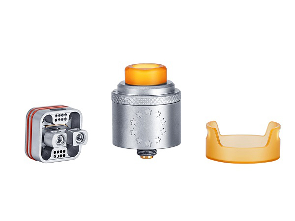 6 декабря компания Timesvape анонсировала в инстаграме новый девайс — Honor RDA. Необычную дрипку обеспечили солидной комплектацией, предусматривающей сразу три сменных купола — два из нержавеющей стали и один из полупрозрачного ultem-пластика. Юбку неподвижно зафиксировали на оригинальной базе и увенчали накатанным топкепом с пьедесталом под широкий 810-й дриптип. Боковую стенку перфорировали двумя воздухозаборными группами и украсили рельефным логотипом. В дополнение ко всему, предусмотрели съемное кольцо, позволяющее увеличить посадочный диаметр с 24 до 26 мм.