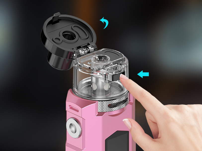 Под-мод питается от интегрированного аккумулятора с запасом в 1600 мАч и выдаёт мощность в диапазоне от 5 до 50 ватт. Для зарядки предусматривается USB Type-C. Доступное сопротивление находится в пределах от 0,2 до 3,0 Ом. Картридж поддерживает четыре вида сменных испарителей и комплектуется двумя разнообразными дриптипами под различные виды обдува. Интенсивность затяжки можно настроить при помощи кольца под резервуаром. Бак вмещает 4 мл жидкости. Заправочное отверстие находится сверху, под удобной откидной крышкой.