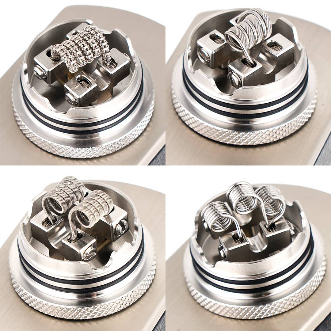 Центр деки занимает угловатая конструкция, состоящая из четырех стоек, отвечающих за установку одной либо двух спиралей. Ножки намотки будут располагаться в вертикальной плоскости и фиксироваться посредством боковых винтов с прямыми шлицами. Интенсивность бокового обдува можно настраивать вращая купол относительно бортов. Помимо обычного пина, предусматривается экземпляр для нижней подачи жидкости.