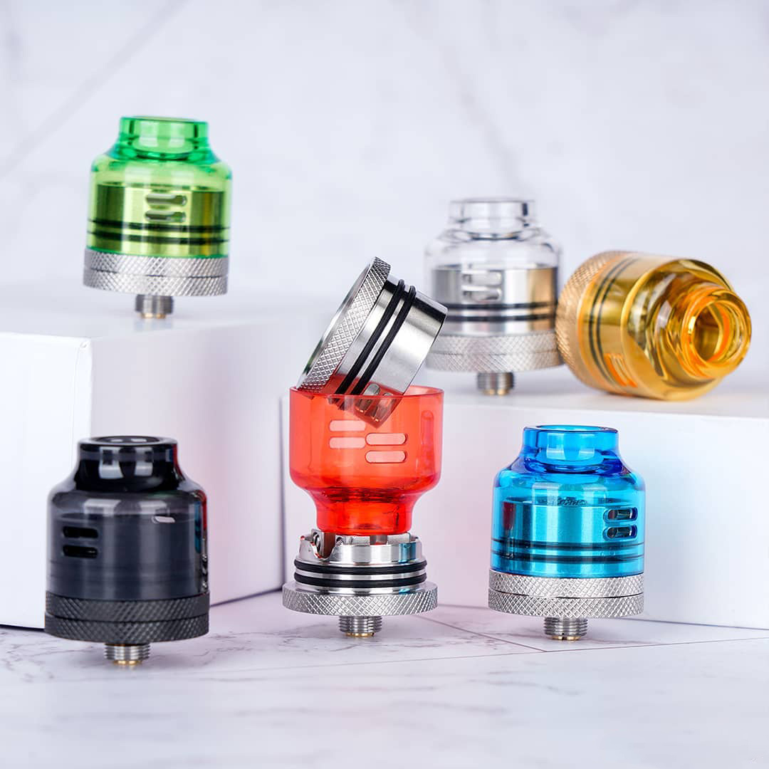 6 декабря компания Oumier представила в инстаграме новую оригинальную дрипку — Wasp Nano V2 RDA. Устройство реализовали в знакомом фирменном стиле со стальной базой и плавной монолитной верхушкой из термостойкого прозрачного пластика. Помимо основного цельного купола, предусмотрели альтернативный вариант под одну спираль и 510-й дриптип. По бокам распределили четыре небольших вытянутых отверстий, отвечающих за обдув. Съемную боковую юбку надежно зафиксировали на базе посредством двух орингов и выемок в бортах. Металлическое основание дополнили зернистой накаткой.