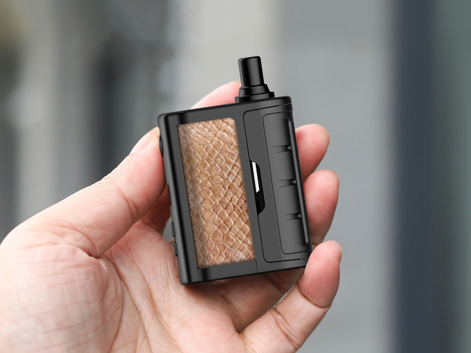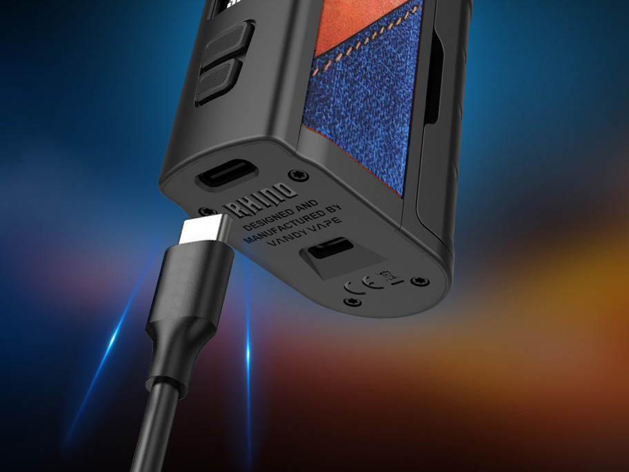 15 февраля компания Vandy Vape представила на странице в фейсбуке all-in-one девайс — Rhino Pod Mod. Компактный под-мод упаковали в черный пластиковый корпус с удобными вставками из экокожи, исполненными в шести разнообразных вариациях. Дриптип реализовали в двух вариантах под разные виды обдува. На узкой стороне разместили круглую кнопку зажигания, маленький дисплей и две регулировочные клавиши. Тыльную сторону эргономично округлили и снабдили съемной крышкой, скрывающей отсек с картриджем. Дно укомплектовали USB-портом.