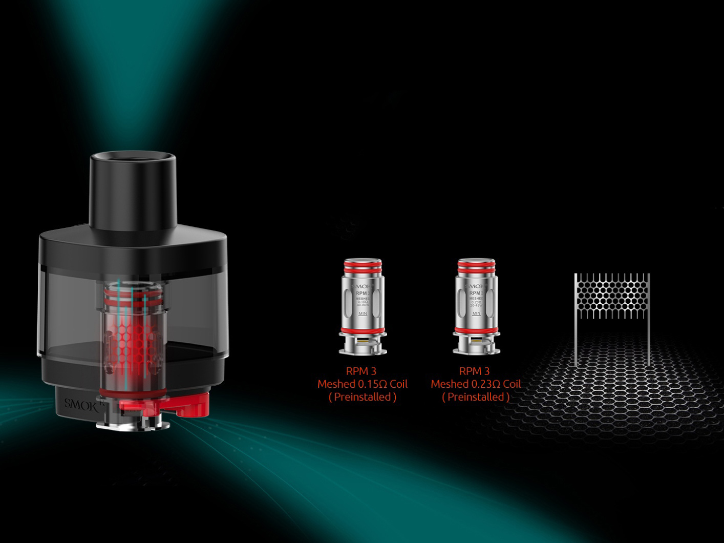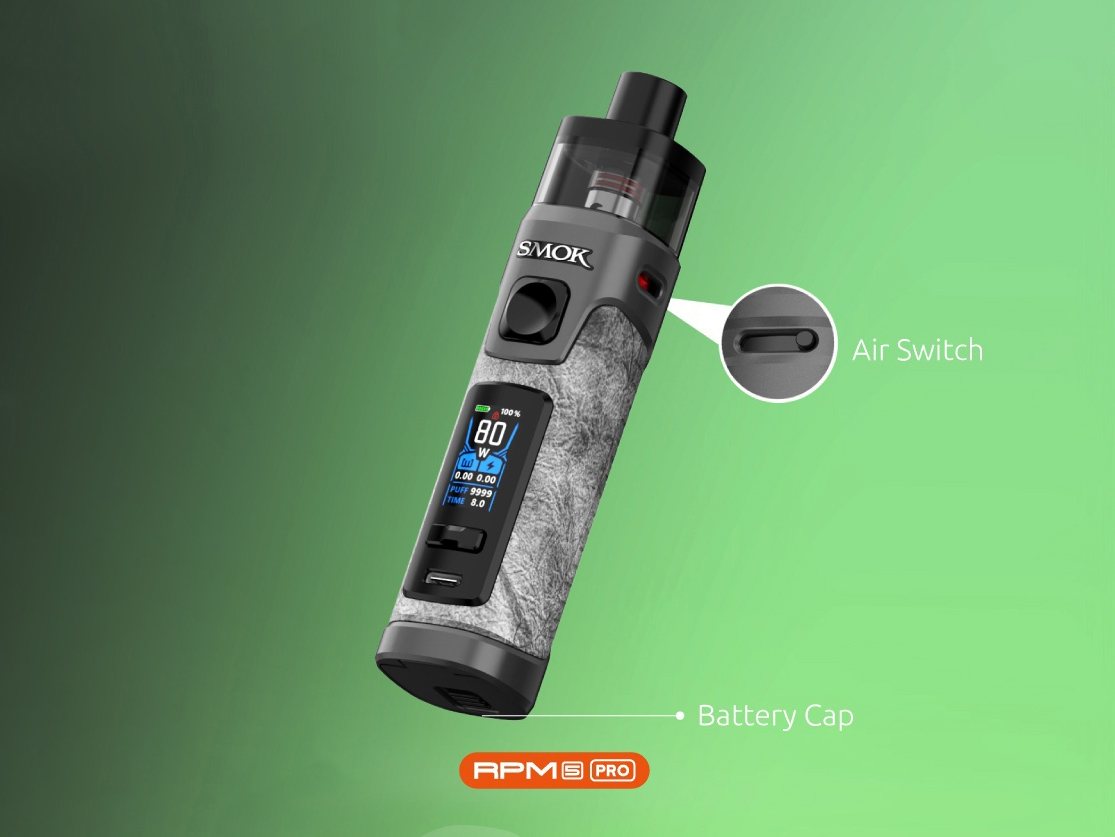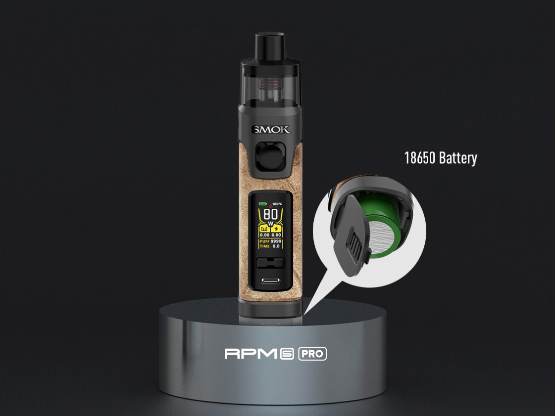 Компания Smok выпустила RPM 5 Pro Pod Kit. Универсальный девайс получил эргономичный корпус с отсеком под внешнюю батарею 18650, вместительный сменный картридж с регулируемым обдувом и плату на 80 ватт.