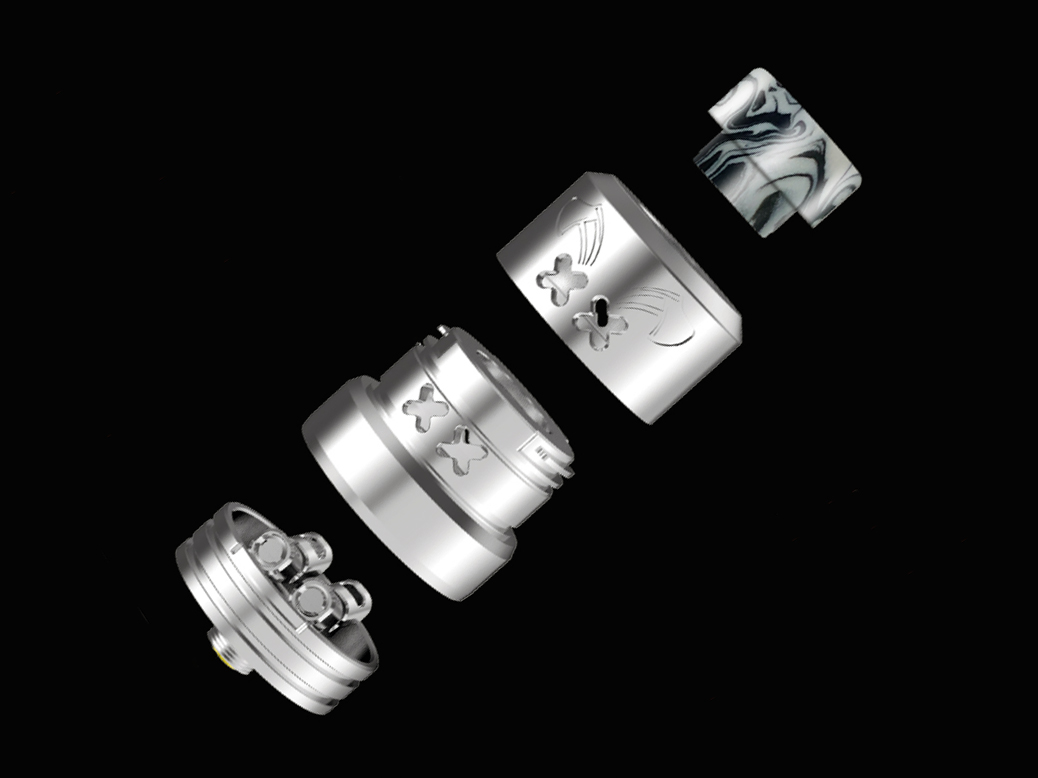 14 апреля компания Hellvape представила на странице в фейсбуке новый девайс — Dead Rabbit Max RDA. Дрипка получила коренастый стальной купол, оформленный в знакомом фирменном стиле. Корпус наделили сужающимся кверху силуэтом за счёт ступенчатой конструкции с массивным основанием. На выбор предложили семь разнообразных расцветок. Сверху усадили контрастный 810-й дриптип из разноцветного акрила. Боковые стенки перфорировали двумя парами крестообразных отверстий, а также украсили традиционной рельефной гравировкой с изображением кролика.