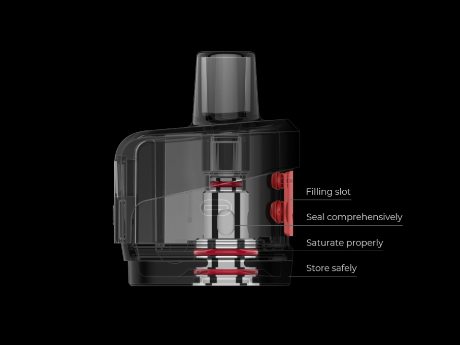 Портативный девайс питается от встроенного аккумулятора с запасом в 1800 мАч и поддерживает вариативную выходную мощность в пределах от 5 до 40 ватт. Полный цикл зарядки через USB Type-C током в 2,5А займет не более 45 минут. Магнитный картридж обладает солидным полупрозрачным резервуаром емкостью 4,5 мл и удобной системой настройки обдува. Устройство поддерживает семь видов сменных испарителей, а также обслуживаемую базу под одну спираль из фирменной линейки GTX. Тем не менее, в стандартный набор войдут только два сеточных экземпляра с сопротивлением в 0,4 и 0,8 Ом.