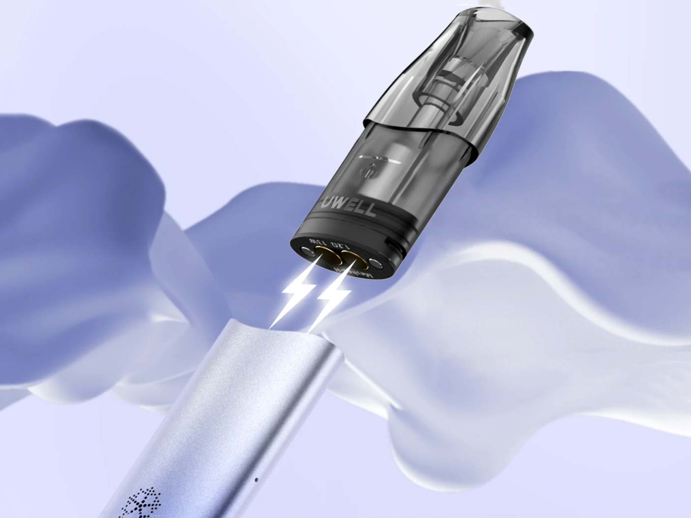 Девайс активируется в процессе затягивания и выдаёт максимальную мощность в 13 ватт. За питание отвечает интегрированный аккумулятор с небольшим запасом в 400 мАч. Зарядку надлежит производить через USB Type-C. Сменный картридж обладает стандартной конструкцией, предусматривающей магнитный коннектор, резервуар на 1,6 мл и встроенный испаритель на сетке с сопротивлением в 1,2 Ом. Помимо предустановленного варианта, в запасе предусматривается идентичный запасной экземпляр.