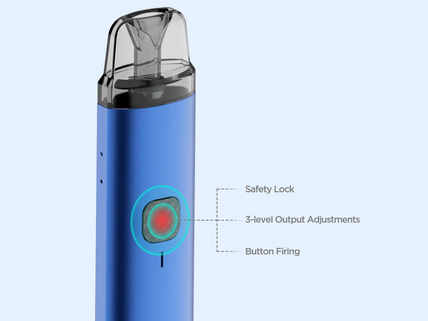 За безопасность и управление миниатюрным устройством отвечает вариативная плата с тремя режимами работы в диапазоне мощности от 7 до 25 ватт. Активацию можно осуществлять как нажатием кнопки, так и затяжкой. Сопротивление может варьироваться в пределах от 0,4 до 2,0 Ом. Встроенный аккумулятор располагает запасом в 1000 мАч. Для быстрой зарядки предусматривается USB Type-C. Сменный магнитный картридж реализуется в двух различных экземплярах — с испарителем на 0,7 и 1,4 Ом. Объем резервуара в обоих случаях составит 2,5 мл. Заправочное отверстие скрывается на боковой стенке бака.