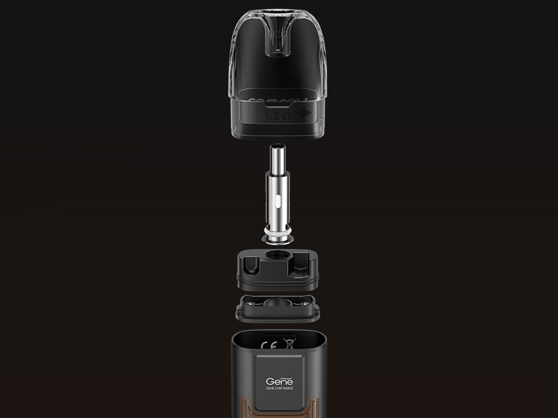 Не смотря на миниатюрность, девайс располагает функциональной платой GENE.AI 1.2 с монохромным интерфейсом и диапазоном мощности от 5 до 20 ватт. Питание осуществляется от встроенного аккумулятора емкостью 800 мАч. Зарядку надлежит производить через USB Type-C. Сопротивление может варьироваться в пределах от 0,5 до 3,0 Ом. Картридж реализуется сразу в двух экземплярах с различными интегрированными испарителями на 0,7 и 1,2 Ом. Объем бака в обоих случаях составит 2 мл. Обдув можно устанавливать как в свободном, так и сигаретном стиле.