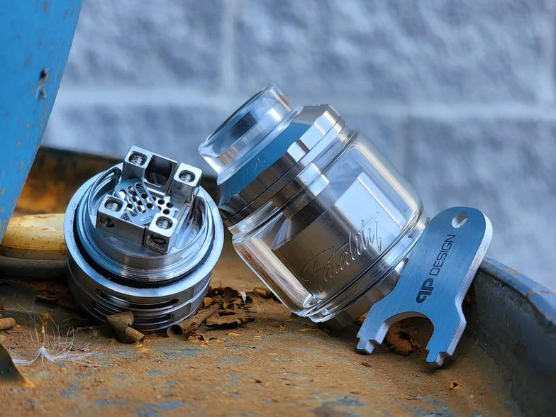 16 мая компания QP Design представила на странице в фейсбуке Fatality M25 Remastered. Усовершенствованный обслуживаемый бак оформили в прежнем стиле серии Fatality из высококачественной нержавеющей стали. На выбор предложили три классические расцветки — серебристую, черную и матовую. Сверху разместили съемный граненый топкеп с широким 810-м дриптипом из прозрачного термопластика. Помимо стандартной стеклянной колбы и мундштука, предусмотрели возможность установки альтернативного комплекта из ultem-пластика. Внутренний купол украсили оригинальной рельефной гравировкой. К массивному основанию пристроили пару обособленных воздушных колец.