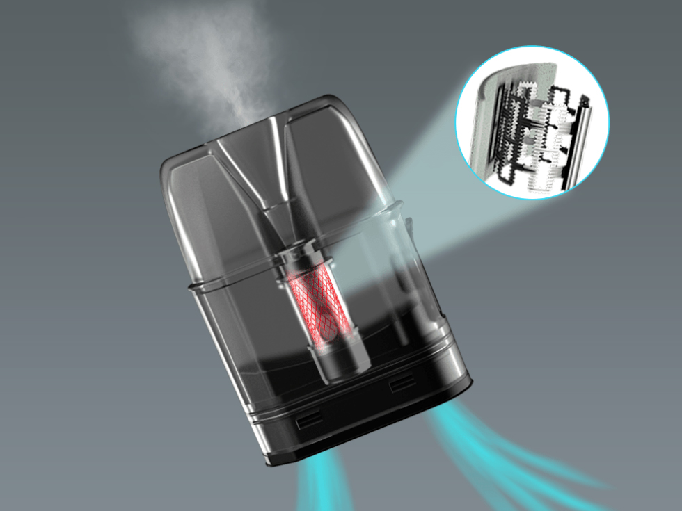 Зажигание происходит при помощи воздушного активатора. Мощность на выходе может достигать максимального значения в 16 ватт. Встроенный аккумулятор располагает запасом в 700 мАч. Полный цикл зарядки через быстрый порт USB Type-C займет менее одного часа. В роли картриджа выступает привычный сменный экземпляр, снабженный интегрированным испарителем с запатентованным фирменным плетением Superb mesh. Резервуар заправляется через боковую стенку и вмещает 2 мл жидкости.