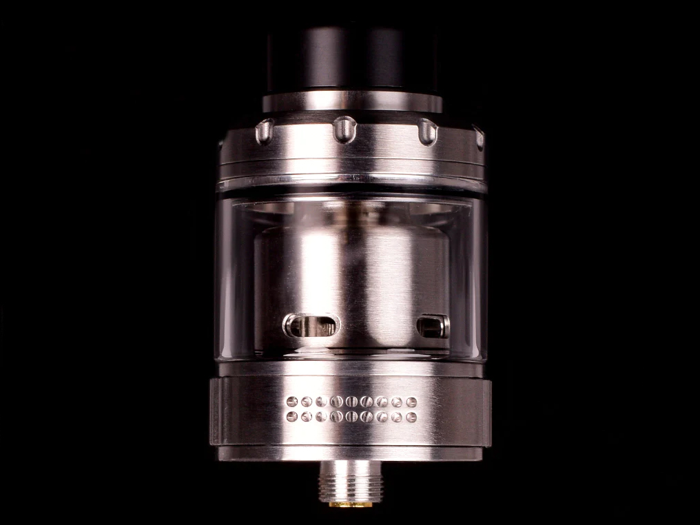 3 августа американская компания Vaperz Cloud представила в инстаграме новое устройство — Dreadnought V2 RTA. Бак получил широкий коренастый корпус на 28 мм из высококачественной нержавеющей стали, оформленный в лаконичном, но оригинальном стиле. Выбор расцветок ограничили тремя классическими вариациями — черной, темно-серой и серебристой. Скручивающийся топкеп снабдили пьедесталом под крупный 810-й дриптип и дополнили мелкими насечками для удобного взаимодействия. Под съемной крышкой разместили слегка углубленную площадку с заправочными перфорациями. Внутренний купол нагружать декором не стали. Основание подпоясали вращающимся кольцом с двумя воздухозаборными группами, состоящими из множества мелких отверстий. Основание украсили фирменной гравировкой.