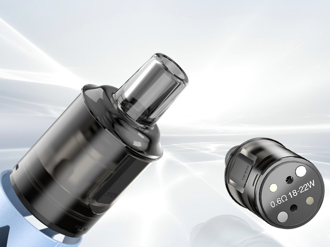 Под-система комплектуется платой 3S CHIP, отвечающей за защиту от перегрева, коротких замыканий, переразряда и перезаряда. Напряжение на выходе может варьироваться в диапазоне от 3,2 до 4,2 вольт в зависимости от оставшегося уровня заряда. Активацию можно осуществлять нажатием кнопки либо при затягивании. Базовым набором предусматриваются два картриджа под свободную либо тугую затяжку — с испарителями на 0,8 и 1,2 Ом. Помимо того, в отдельной продаже доступно ещё два варианта. Обдув можно настраивать при помощи ползунка на боковине корпуса. Объем бака составляет 3 мл.