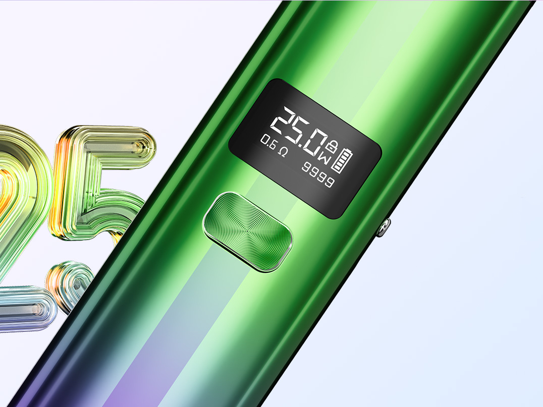 Не смотря на миниатюрные габариты, девайс располагает достаточно информативным одноцветным интерфейсом. Выходную мощность можно регулировать в диапазоне от 9 до 25 ватт. Питание осуществляется за счет интегрированной батареи емкостью 900 мАч. За быструю зарядку током в 2А отвечает USB Type-C. Картридж реализуется в двух различных вариантах — первый работает со встроенным испарителем на 0,6 Ом, второй использует сменный экземпляр с сопротивлением в 0,8 Ом. Объем бака составит 2,5 либо 2 мл в зависимости от версии. Затяжка детально настраивается при помощи регулятора на боковой стенке под-системы.