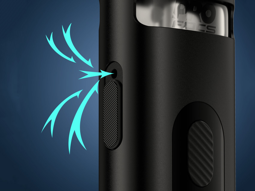 Внутри скрывается лаконичная, но достаточно функциональная плата, поддерживающая монохромный интерфейс и возможность регулировки мощности в пределах от 5 до 20 ватт. За питание отвечает встроенный аккумулятор на 850 мАч. Зарядку следует производить через USB Type-C. Картридж обладает привычной конструкцией, включающей магнитный коннектор, емкий резервуар на 3 мл и базу под три вида сменных испарителей. Тем не менее, в базовый набор войдут только два экземпляра из линейки UN2 с сетками на 0,8 и 1,2 Ом. Заправка осуществляется сверху. Обдув настраивается при помощи ползунка на торце мода.