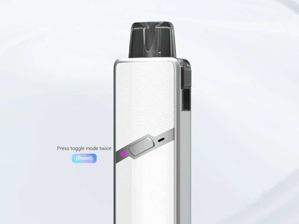 Внутри находится минималистичная, но вариативная плата, поддерживающая два режима работы — Normal и Boost. Напряжение на выходе может варьироваться в пределах от 2,6 до 3,4 вольт. Диапазон сопротивления составляет от 0,4 до 3,5 Ом. Активацию можно осуществлять нажатием кнопки либо при затягивании. В качестве элемента питания используется встроенный аккумулятор на 1400 мАч. Зарядка производится через USB Type-C током в 0,8А. Картридж работает со сменными испарителями из фирменной линейки S-Coil. Резервуар вмещает 3 мл жидкости. Заправочное отверстие скрывается на боковой стенке бака. Обдув можно настраивать при помощи ползунка.