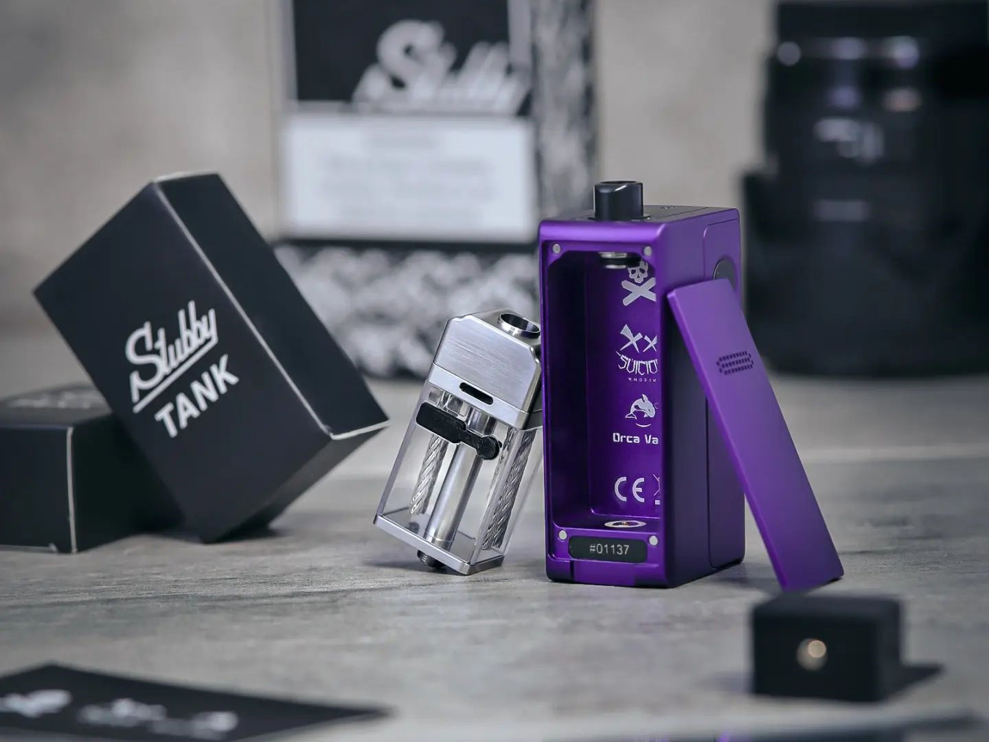 31 августа компания Suicide Mods анонсировала в инстаграме многофункциональный стартовый набор — Stubby AIO Kit, разработанный совместно с Orca Vape и блогером Vaping Bogan. Оригинальное устройство получило небольшой прямоугольный корпус, выполненный в строгом стиле из легкого сплава. На выбор предоставили три расцветки — черную, серую и пурпурную. На одном из широких торцов разместили круглую кнопку зажигания и небольшую съемную панель, скрывающую дисплей и пару маленьких клавиш. Противоположную сторону накрыли аналогичной магнитной крышкой, отвечающей за доступ к аккумуляторному ложу. Ещё одну панель разместили на лицевой стороне — под ней спрятали отсек с баком. Для отслеживания уровня жидкости в резервуаре на фасаде предусмотрели перфорации. USB-порт отправили на тыльную сторону.