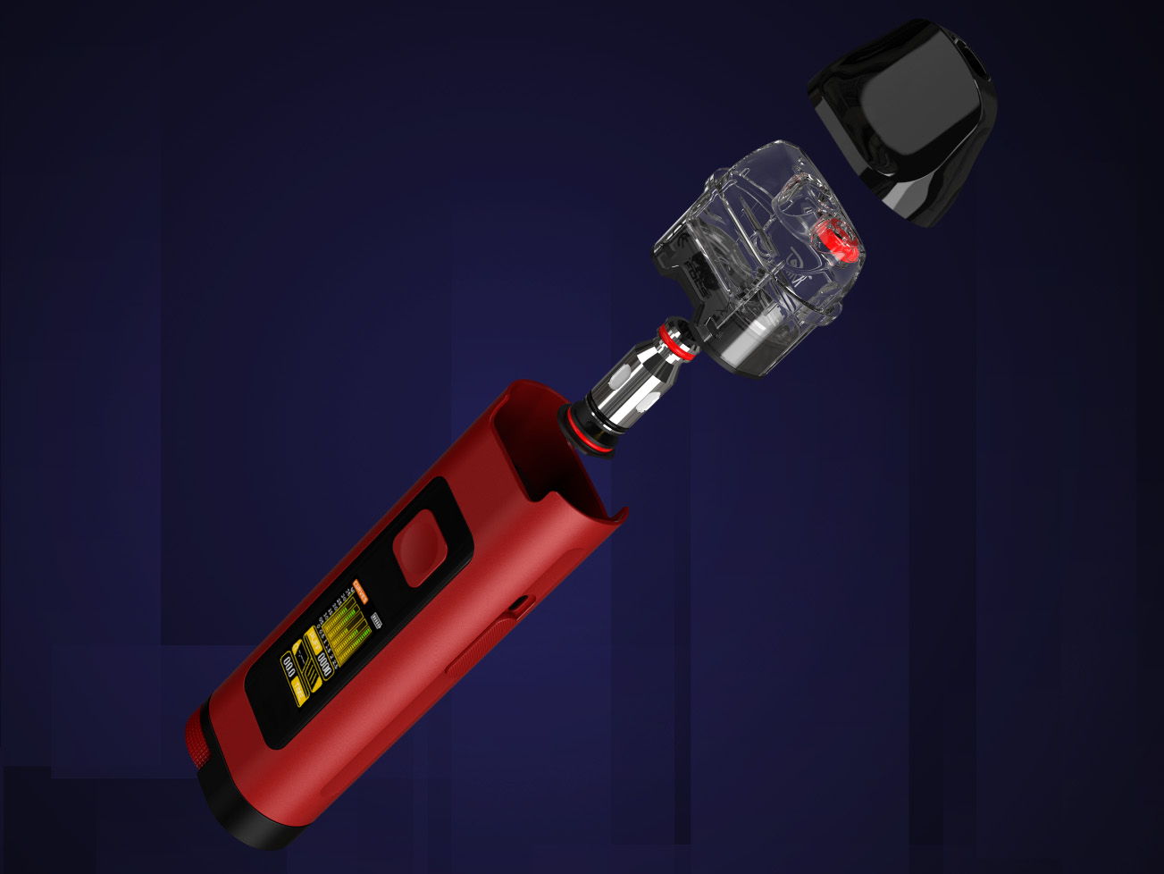 Универсальная под-система комплектуется платой с информативным цветным интерфейсом и вариативной мощностью от 5 до 35 ватт. Кроме того, предусматривается возможность переключения на варивольт, предварительный нагрев, Bypass и специальный режим Custom. В качестве источника питания используется встроенный аккумулятор емкостью 1100 мАч. За зарядку током в 2А отвечает USB Type-C. Активацию можно осуществлять как нажатием кнопки, так и посредством затяжки. Интенсивность обдува настраивается при помощи ползунка на торце корпуса.