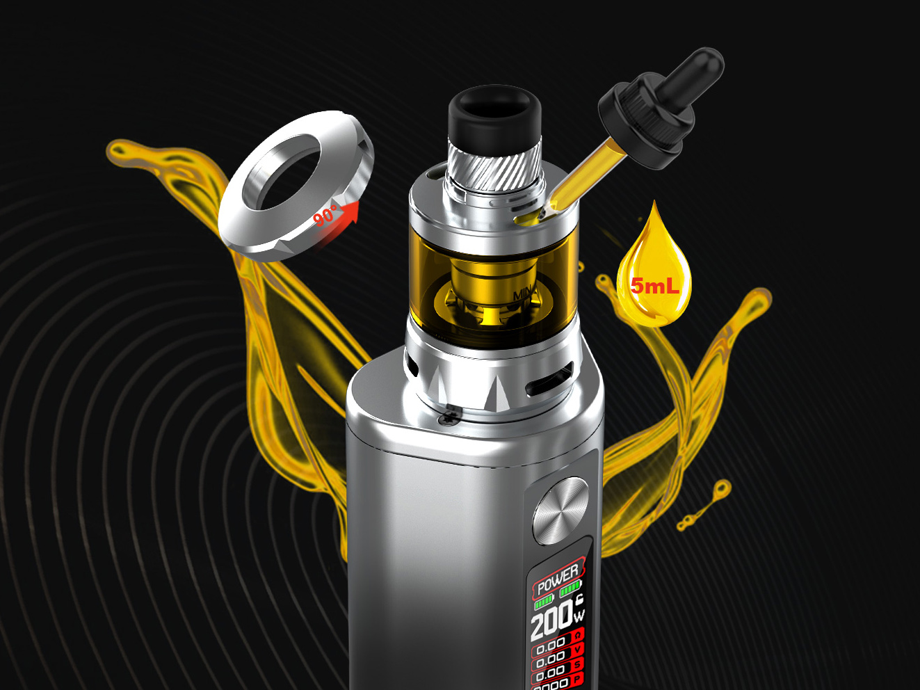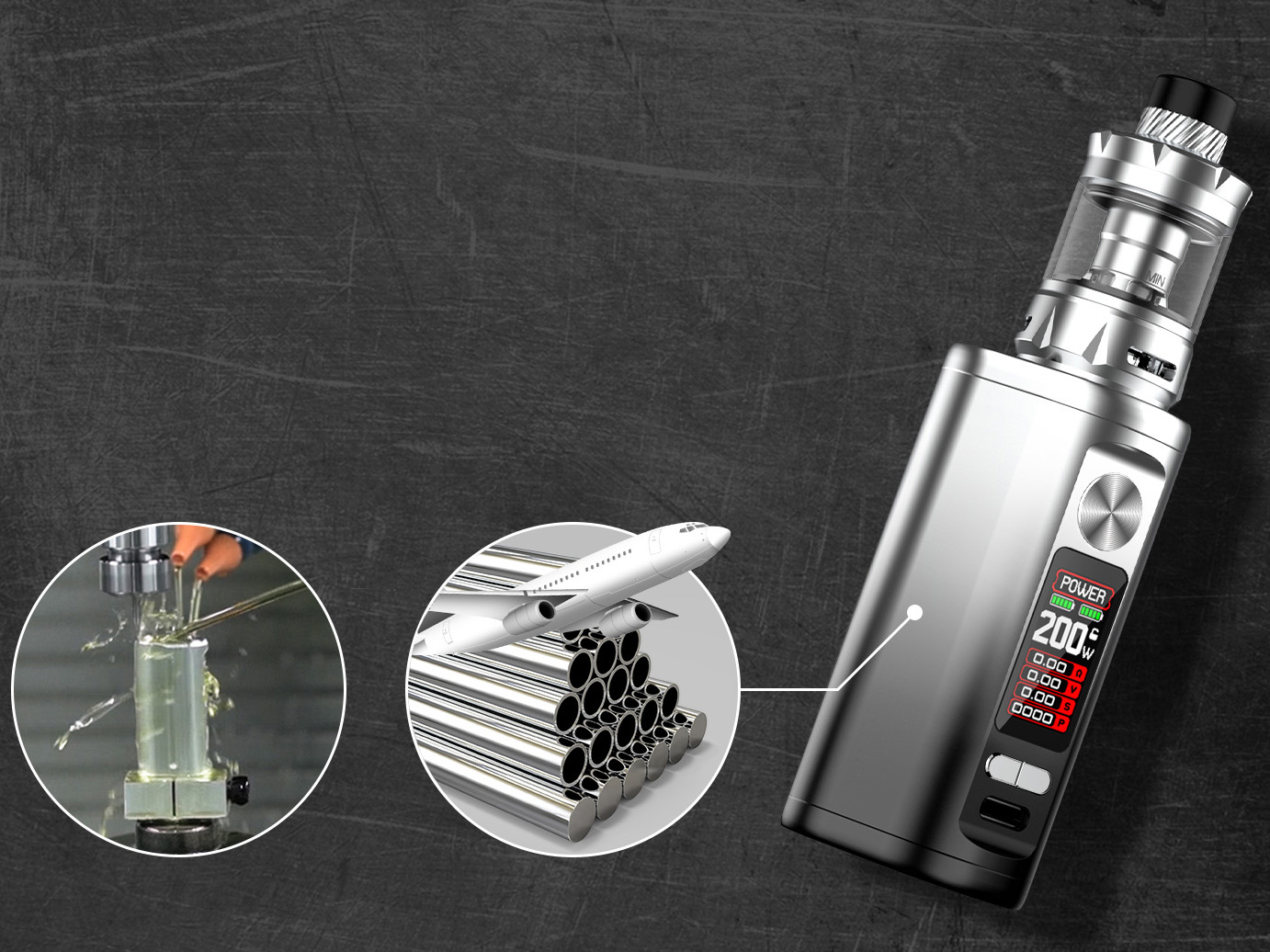 Девайс использует привычную плату без особых новшеств. Работа осуществляется в диапазоне от 5 до 200 ватт, а также в режимах температурного контроля, Bypass и VPC. Для питания требуются два внешних аккумулятора формата 18650. Через USB Type-C порт можно произвести быструю зарядку током в 1,5А.